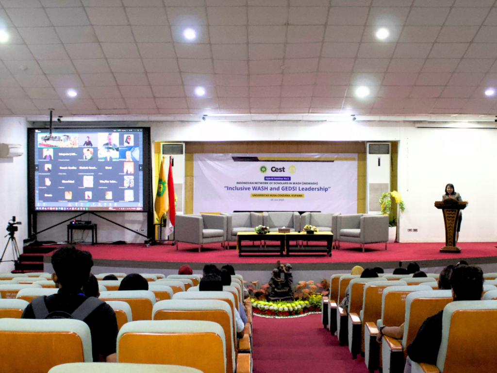 The quiet city of Kupang buzzed with energy as dozens of people filled the Rectorate Theatre of Nusa Cendana University (UNDANA), while many others tuned in online for a seminar as it was a hybrid event. This wasn’t just another academic event—it was a call to action. The 2nd event of Indonesian Network of Scholars in WASH (INSWASH) hybrid seminar took place under the theme: “Inclusive WASH and GEDSI Leadership”, placing the spotlight on where it is needed the most.